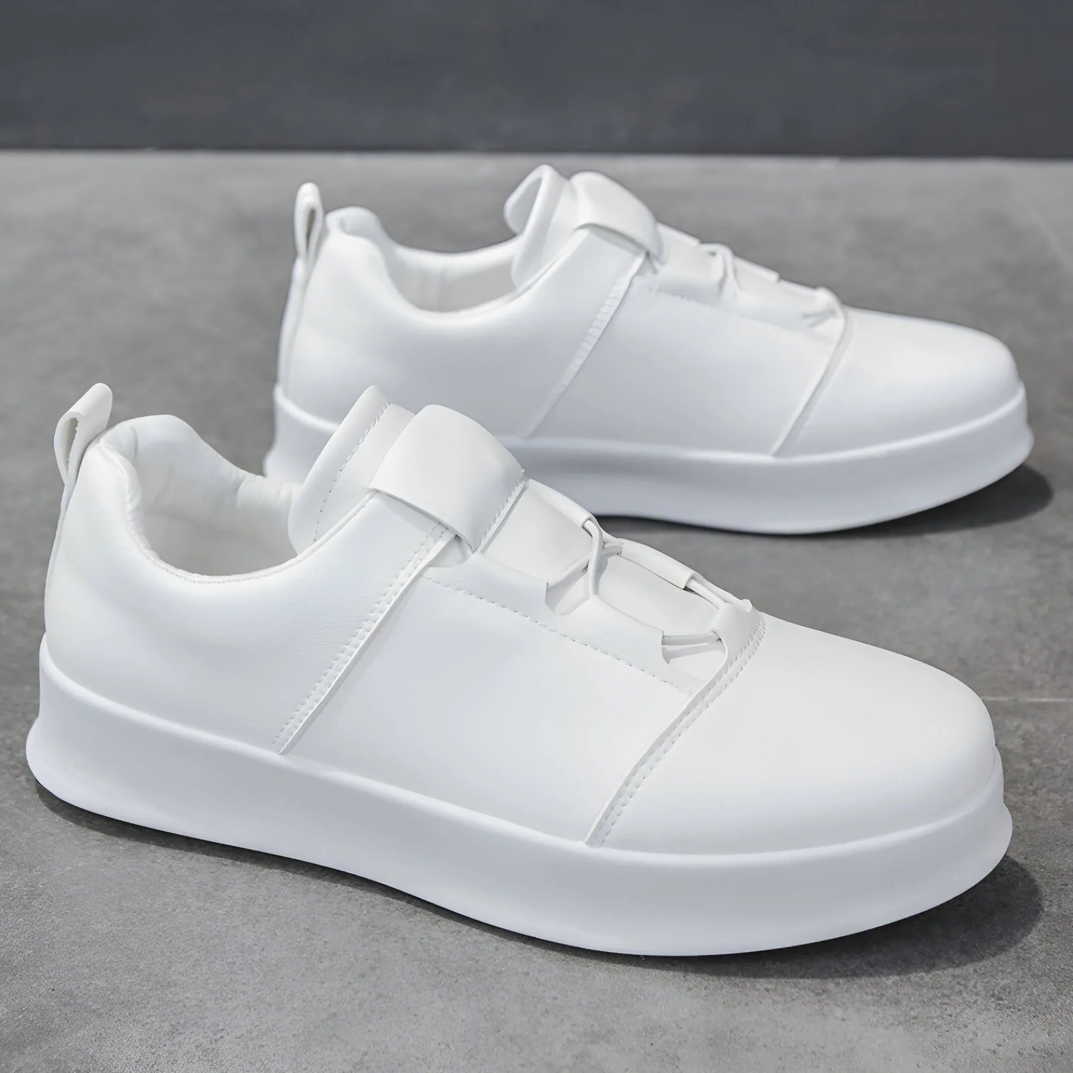 Soft full-grain leather wraps a laceless upper you can slide into and go. Hidden stretch panels hug the foot, while a feather-light EVA midsole keeps every stride easy. Clean lines, white rubber grip—simple, sharp, done.